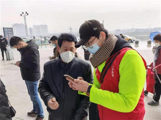 “大伯您要先扫码,点击这里登记信息……”1月30日,寒风凛冽,武汉迎来春运首个周末客流小高峰,在武汉火车站进站口处,志愿者朱思愚正为河南籍乘客刘先生提供帮助。刘先生准备回家过年,但由于不会使用智能机,无法顺利进站。“你们志愿者太贴心了,太感谢了!”