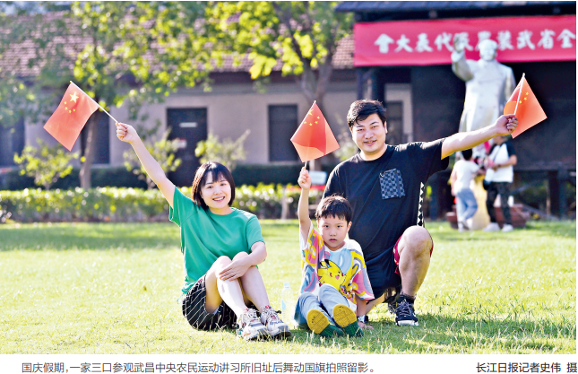 国庆长假武汉街头和景区涌动“中国红”“志愿红”