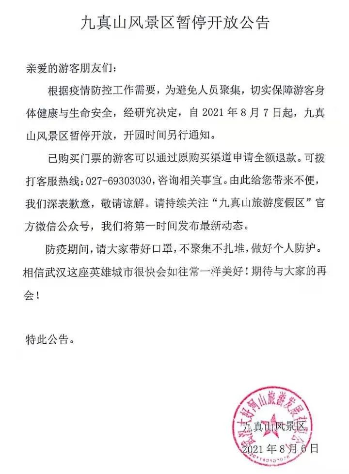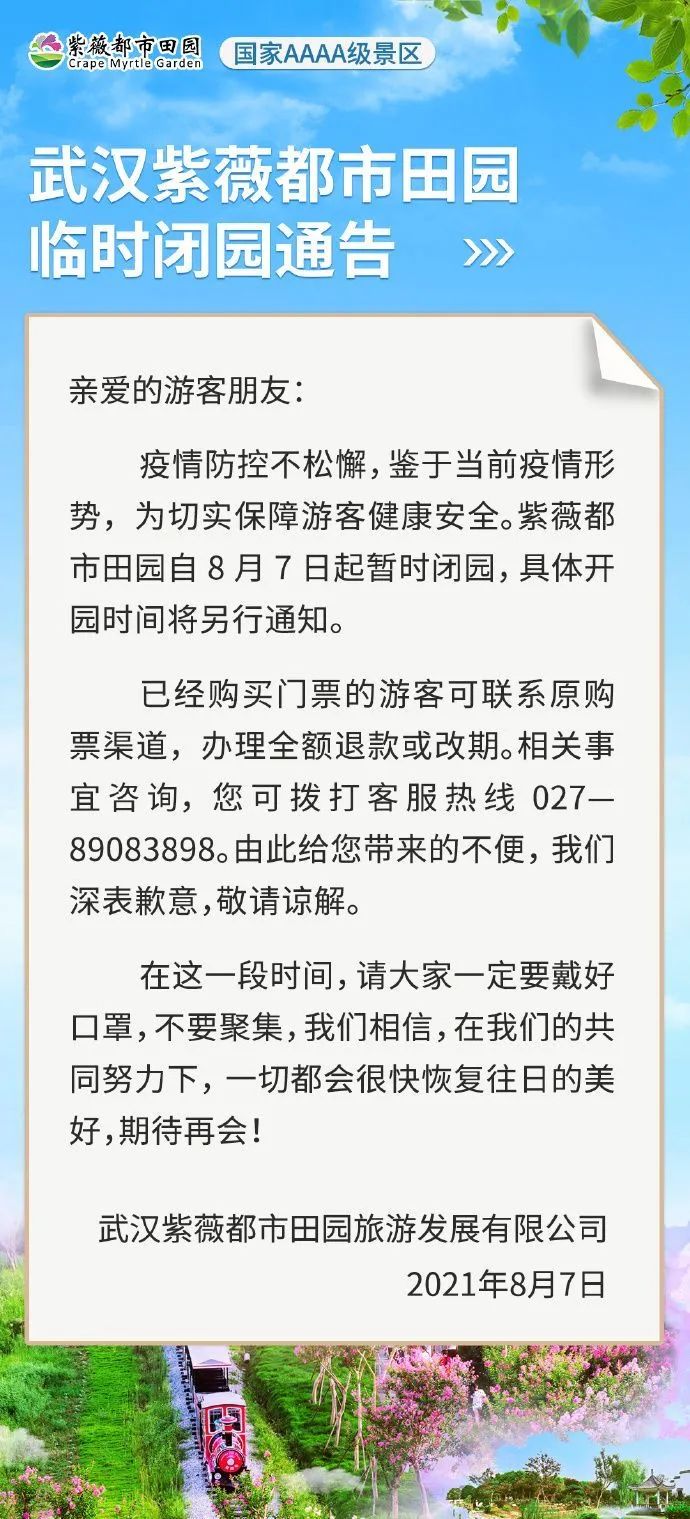 目前,武汉市全员核酸检测采样数突破千万。武汉人众志成城,齐心切断疫情传播链。为响应疫情防控工作统一安排,武汉多家旅游景区发布闭园、闭馆公告。