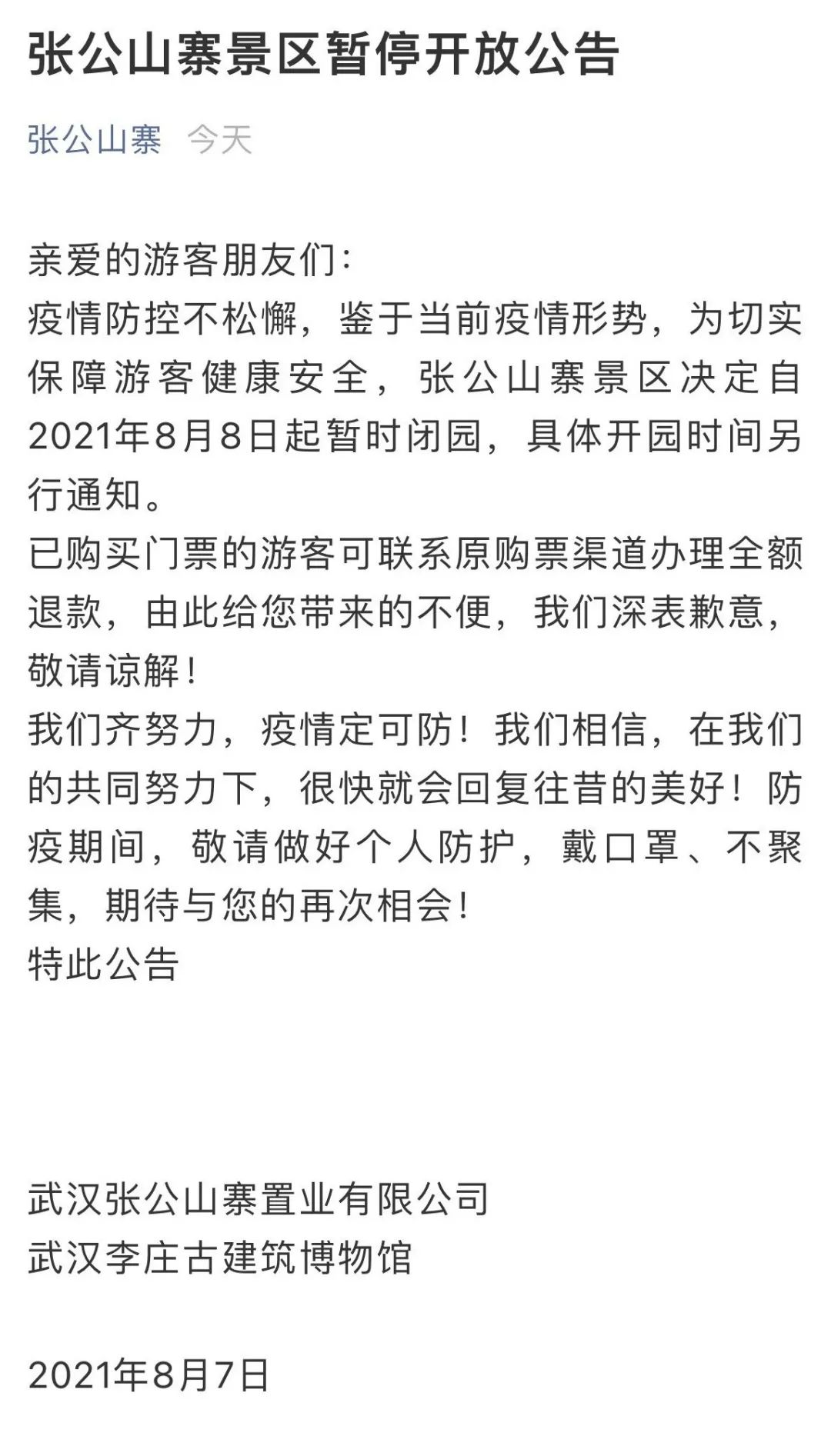 武汉文旅场所疫情防控不松懈!这些景区暂停开放