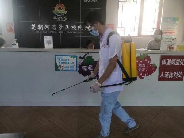 闭园后每日进行景区消杀。花朝河湾景区 供图