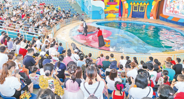 8月8日是“惠游湖北·打卡大武汉”活动首日,大批游客进入极地海洋世界游玩,其中不少人来自外地。