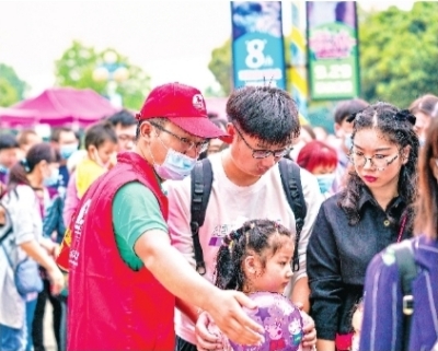 武汉文旅志愿者在热门景区为游客服务