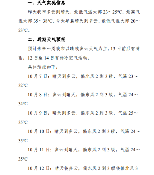 旅游气象服务专报(2025年10月7日)