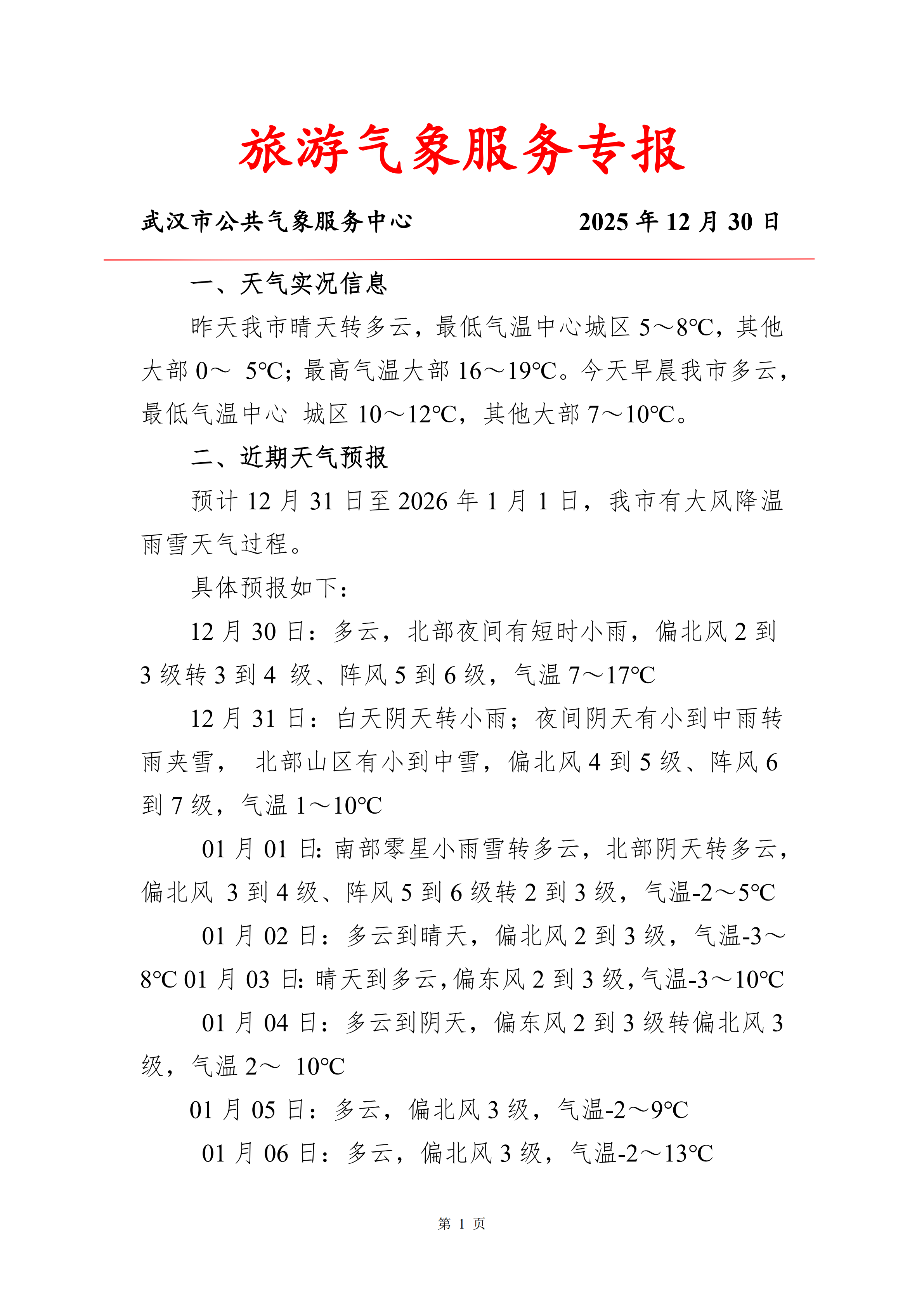 旅游气象服务专报(2025年12月30日)