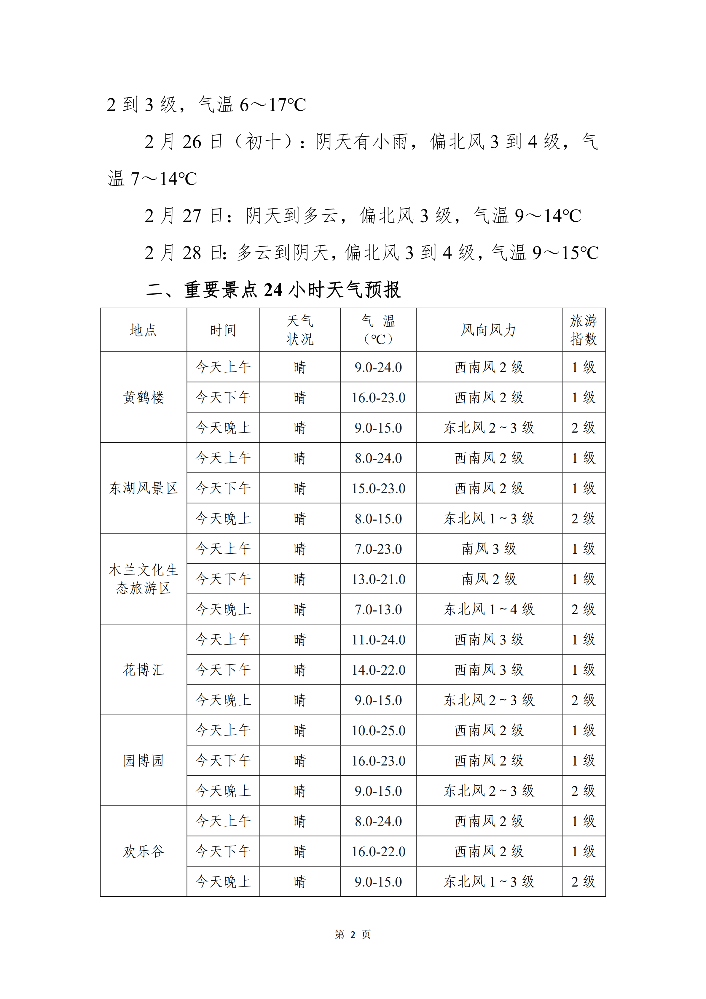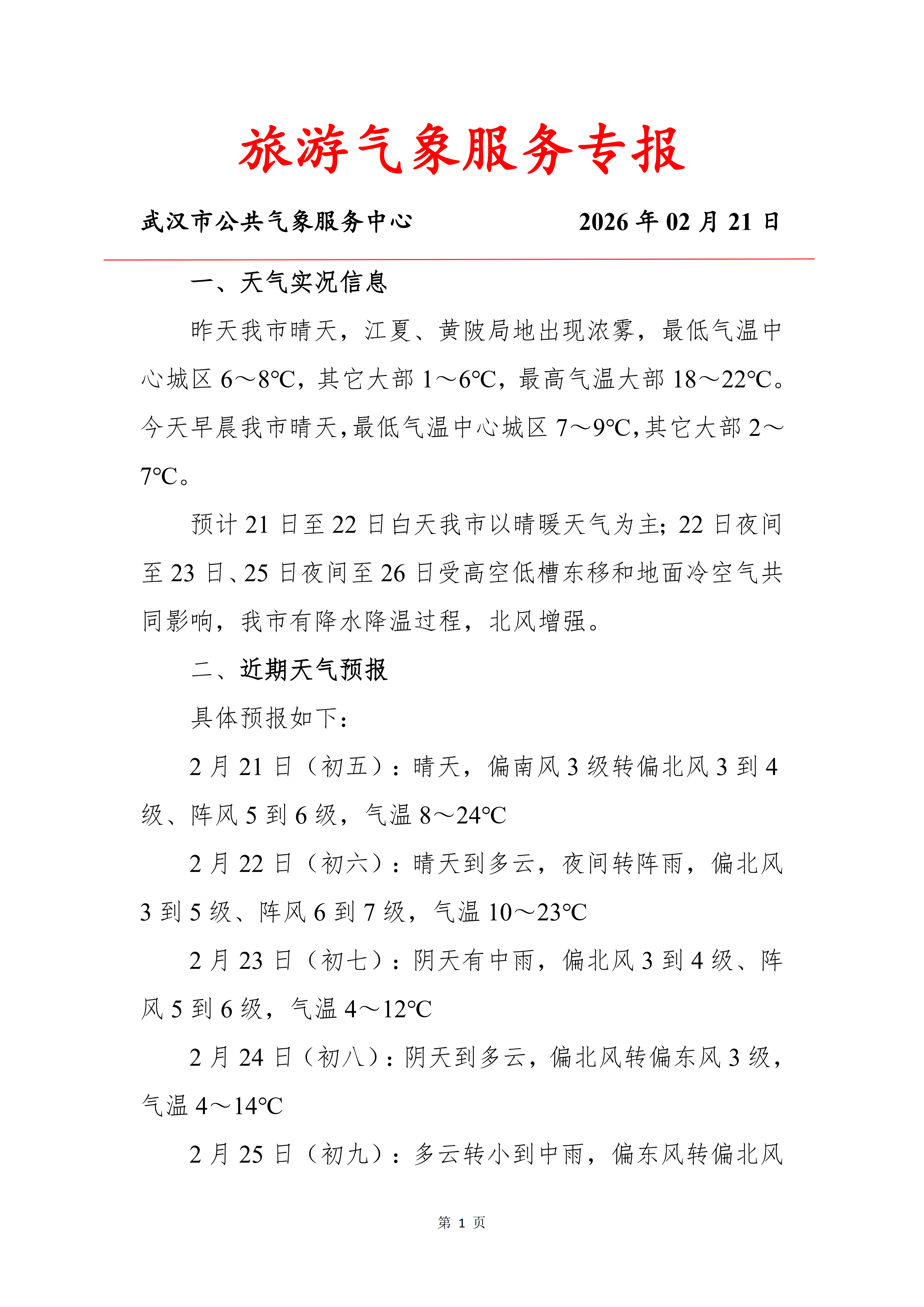 旅游气象服务专报(2026年02月21日)