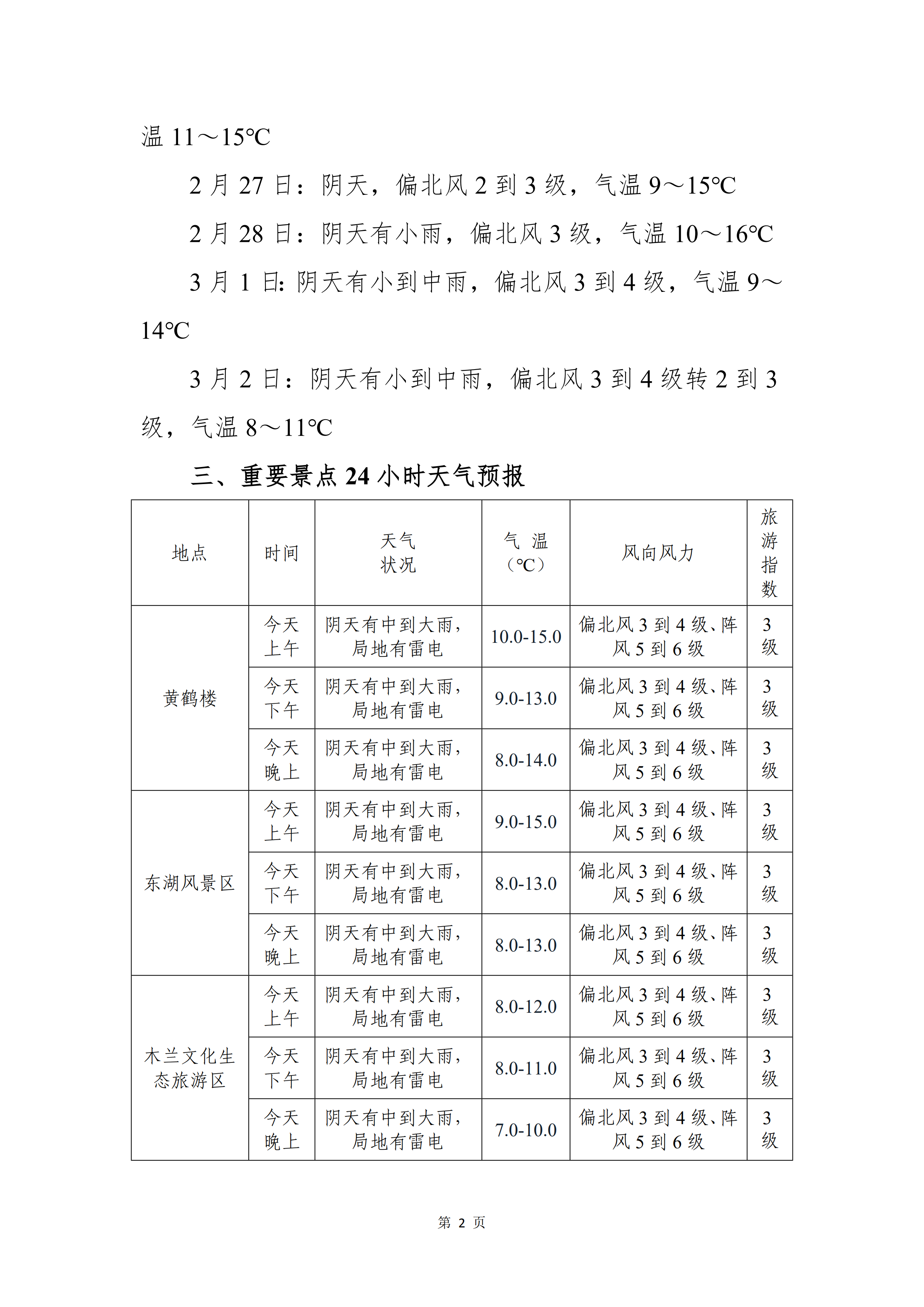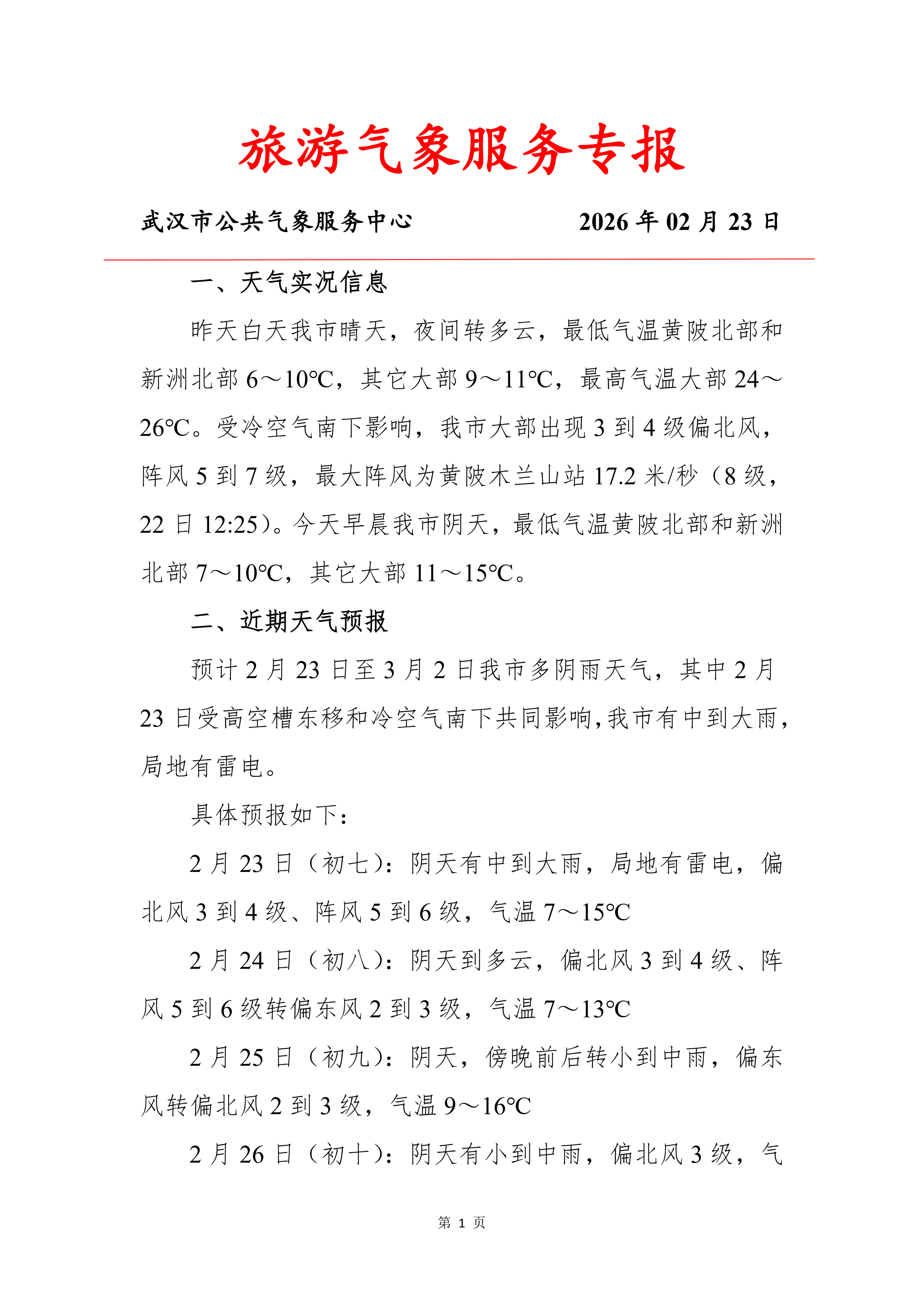 旅游气象服务专报(2026年02月23日)