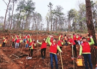 植树正当时,武汉文旅志愿者植树添绿应春风。