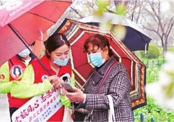 今年3月5日是全国第58个学雷锋纪念日。在东湖樱园,穿梭的“红马甲”特别美。文旅志愿者冒雨开展志愿服务,为需要帮助的游客撑伞、拍照,提醒游客戴好口罩。“我会从身边的小事做起,尽可能地为大家提供帮助。”文旅志愿者陈艳青说。