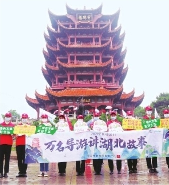 中国旅游日,武汉文旅志愿者在热门景区开展文明旅游志愿服务和“万名导游讲湖北故事”活动。