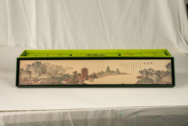 端午节小长假期间,位于昙华林的扬子江非遗汉点·伴手礼店,推出充满着浓浓节日的伴手礼,吸引了众多外地游客前往购买。长江日报记者注意到,今年,该店粽子礼盒推陈出新,将城市地标变成古画融入粽子礼盒中。店内“楚游记”粽子礼盒呈长方形,墨绿色的盒身一打开,清新绿直冲视野,里面含有一盒绿豆糕和四款粽子。粽子盒子上分别画有武汉黄鹤楼、襄阳古隆中、十堰武当山、秭归屈原祠。当把粽子礼盒盖翻转过来,一幅手绘的山水古画徐徐展开,画中能依次找到粽子盒子上的四大景点,依山傍水,风景优美。“端午吃粽子是传统文化,我们想以此为契机,让更多人了解湖北丰富的旅游资源和文化特色。”该店文创负责人朱棣文说。