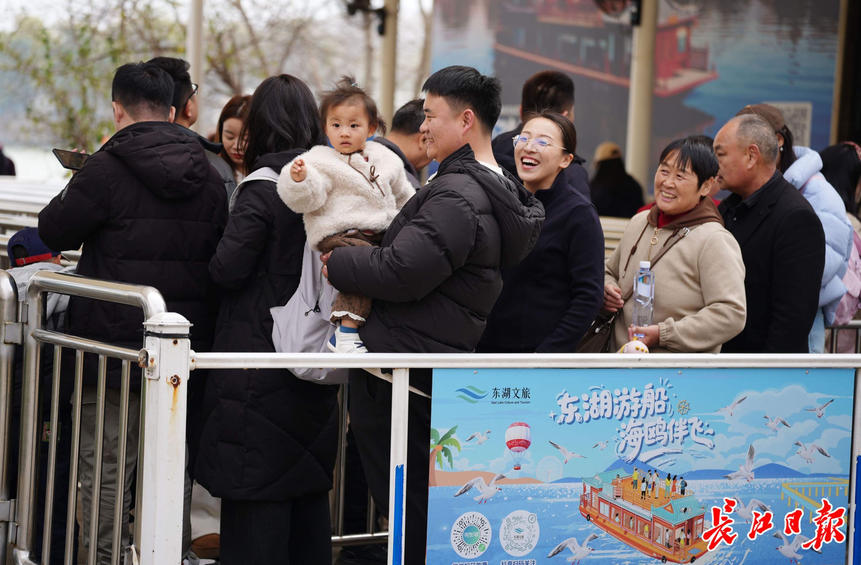 东湖游船登船处,游客排长队。