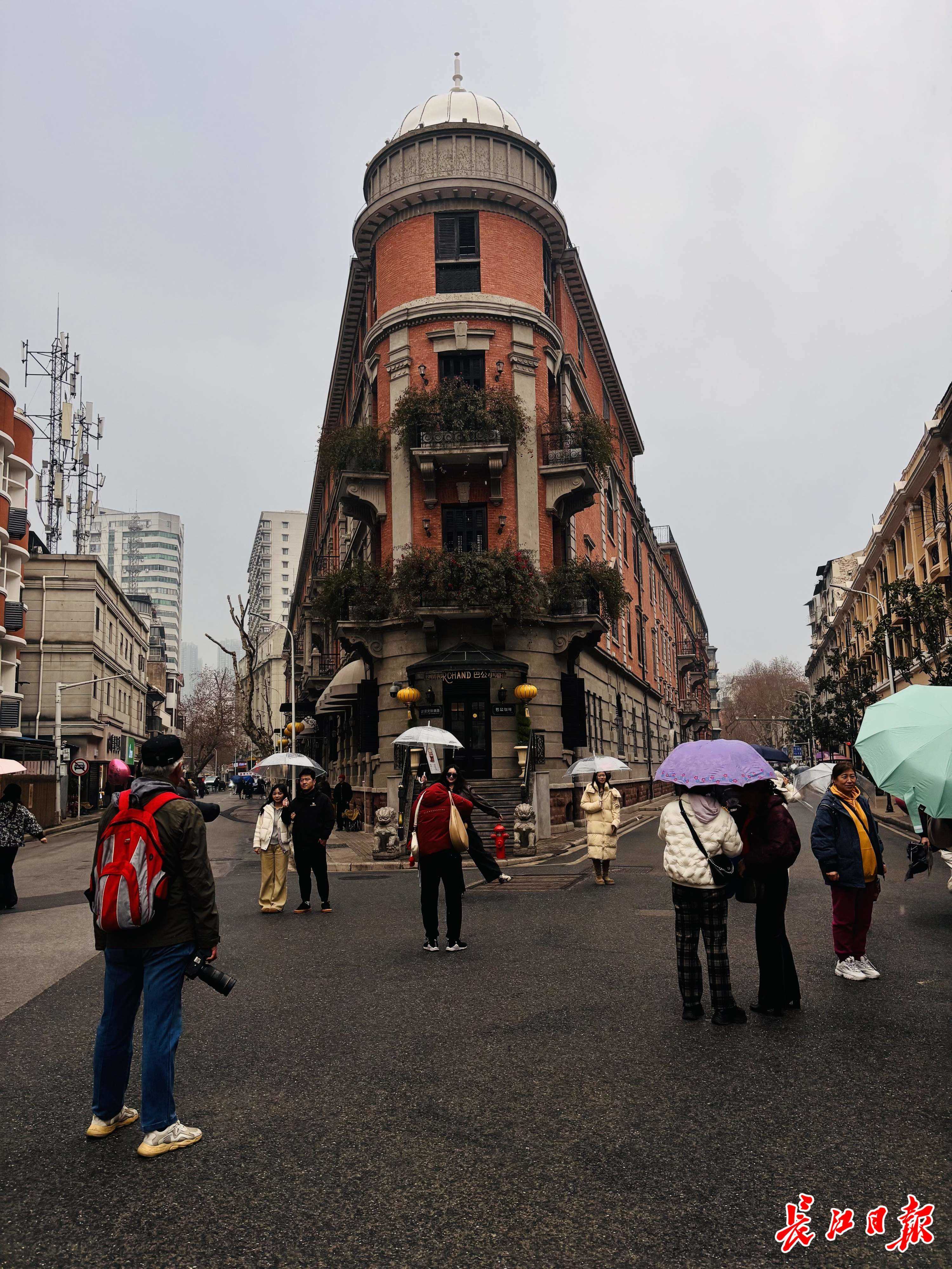 午后,天空飘起细雨,但并未冷却游客探索武汉的热情。在汉口历史风貌区,随处可见撑着雨伞漫步的游客身影。不少拖着行李箱的游客直接走进江汉路、黎黄陂路沿线的特色酒店办理入住,开启江城之旅。