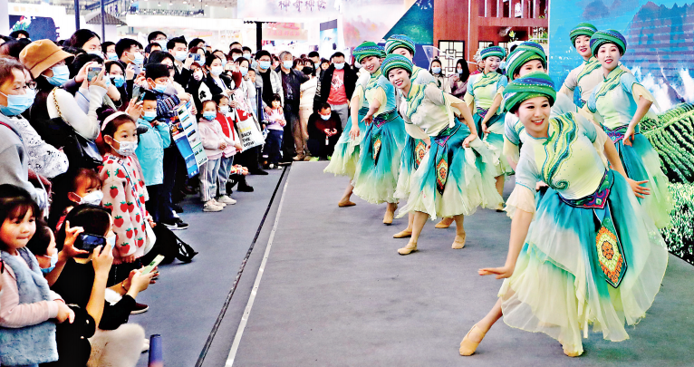 在11月26日至28日举行的首届中国(武汉)文化旅游博览会上,颇具地方特色的《五峰采茶舞》《知音号演员互动展示》《大唐歌舞》等精彩的文艺演出,为现场观众献上了一场又一场视觉盛宴。