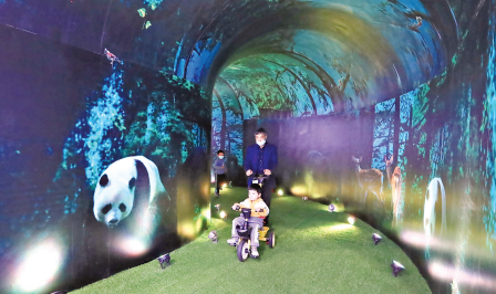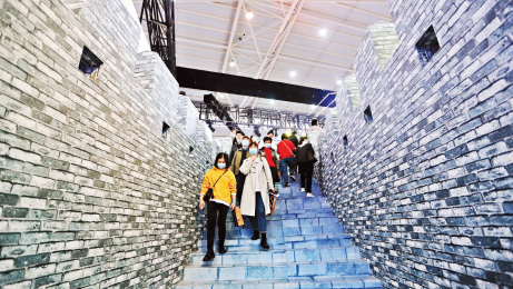 观众穿越时空隧道。