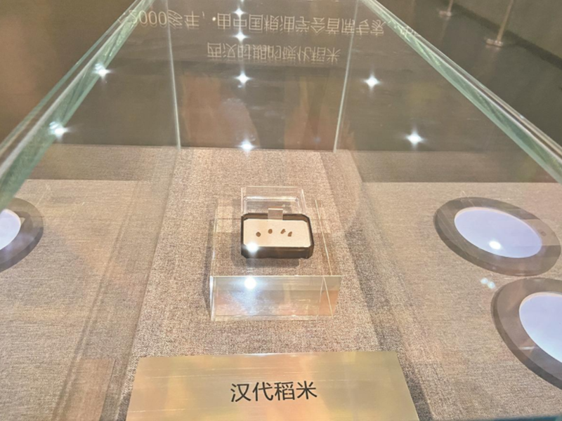 走到馆中,一个正方形的玻璃盒子内放置着4颗西汉时期的稻米,“它们出土于江西,距今两千多年历史,是镇馆之宝之一。”博物馆工作人员王丽英说。