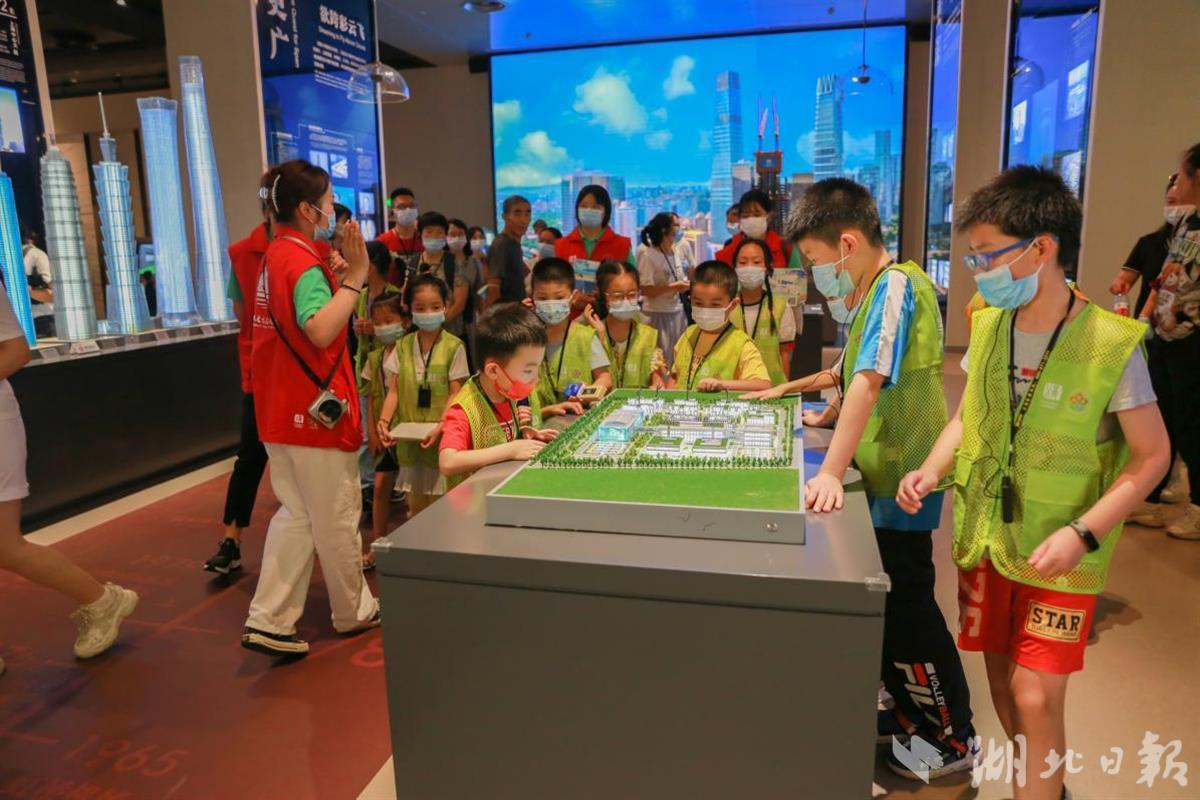 在荆楚建筑展厅,大家一览本地代表建筑。武汉文旅志愿者雷婷表示,作为一个武汉人感到非常骄傲,武汉的建筑与“追求卓越,敢为人先”的武汉精神是相契合的,今天的“第二课堂”可以让这些“武汉伢”们更有幸福感,获得感。