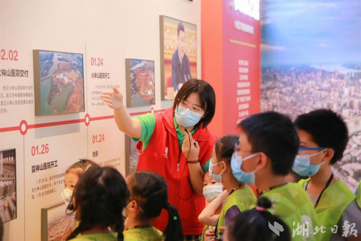 在“火神山、雷神山医院建设纪实展览”前,孩子们纷纷赞叹“武汉速度”,也被这些默默付出的平凡英雄所感动。武汉市光谷实验小学小讲解员卢子睿表示,“建筑工人们一砖一瓦搭建起了我们居住的城市,给了我们良好的生活环境,他们是普通人,也是英雄。我们要向他们学习。”