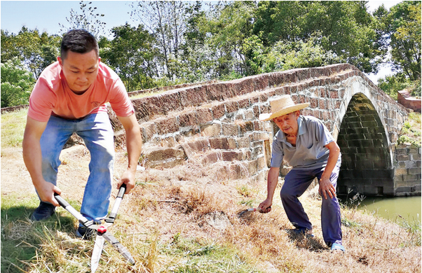 每天到桥上转一转,早已成为饶浩功的生活习惯。早年下田劳作,他早上5时就出门,途经南桥时会停下来,“桥上的杂草需要清除,行人留下的垃圾也要及时清理”。如今,七旬的他每天开着代步的农用三轮车巡桥。