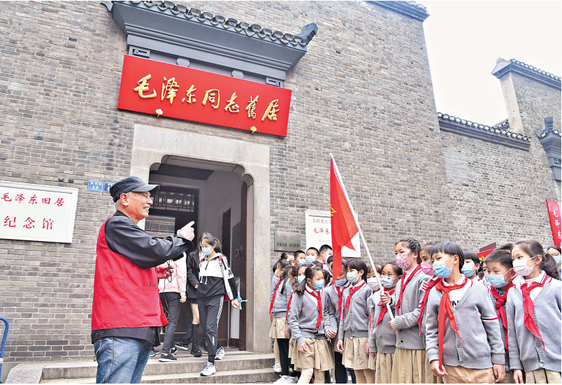 学生们参观武昌毛泽东同志旧居,接受爱国主义教育。