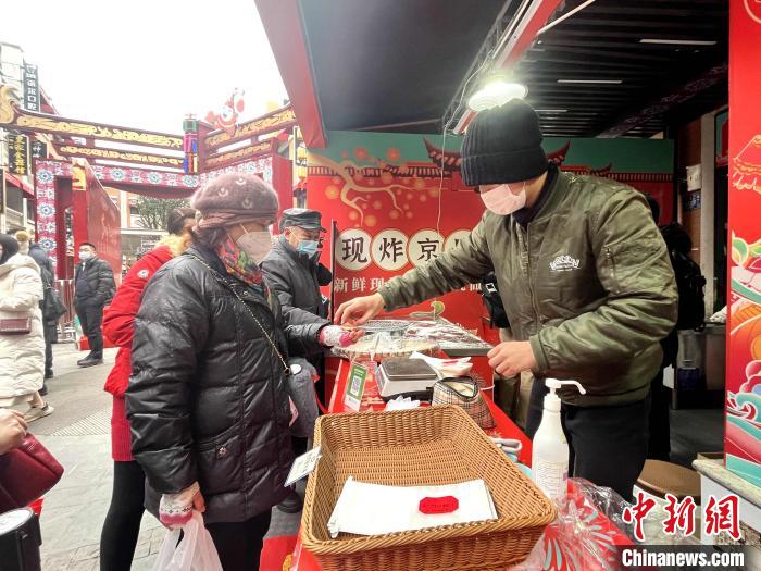 当日正值南方农历小年,走进吉庆街,一串串红灯笼、中国结将街道装饰一新,耳畔欢快的乐曲此起彼伏,“年味”迎面而来。德华楼、汪玉霞、冠生园等老字号店铺里,市民排起了长队。