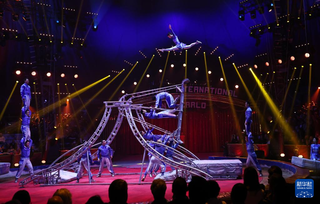 武汉杂技团《扬帆追梦·浪船》在蒙特卡洛国际马戏节比赛中。新华社发