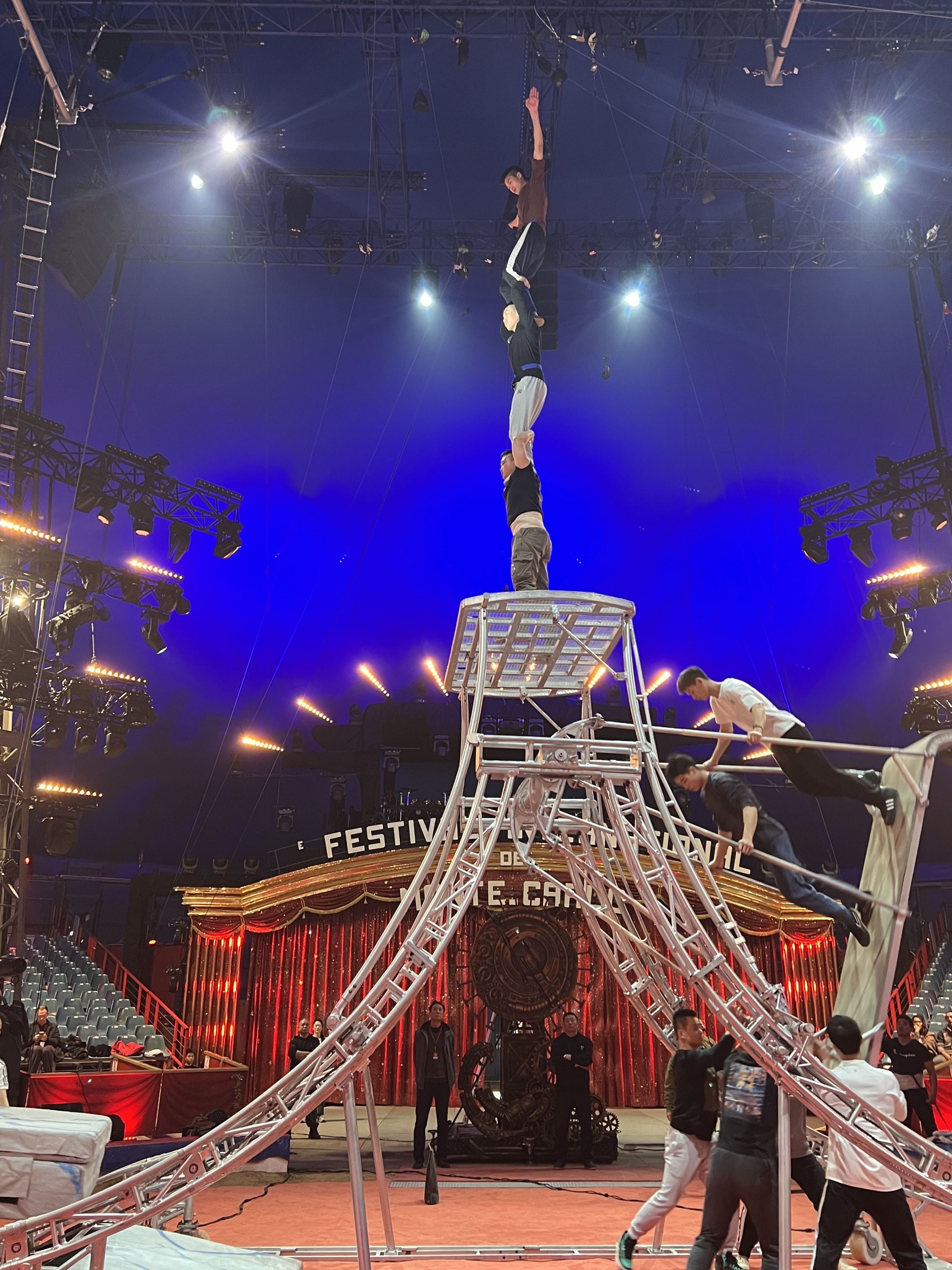 《扬帆追梦·浪船》演员在蒙特卡洛国际马戏节赛前排练。 武汉杂技团供图