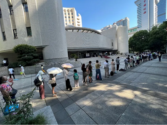 读者在武汉图书馆门前有序排队入馆