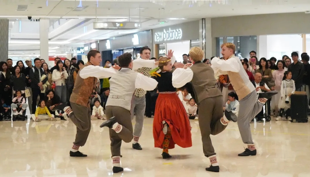 当演出开始,周末购物休闲的市民循着欢快的旋律聚拢而来,自动围成一个层层叠叠的圆圈,手机镜头齐刷刷对准中央,掌声与音乐声交织成最热烈的现场背景音。近两小时的载歌载舞让商场变身秀场,舞团成员年龄跨度从18岁到70岁,身着不同样式的民族服装,展现了热情洋溢、活泼团结的异域风情。