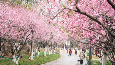 作为武汉市花,梅花以近10万株的规模率先点燃春意。目前正在赏梅最佳时期。花期不等,最晚可持续至3月中下旬。武汉景区、公园内梅花灿若云霞,成片盛开。东湖梅园内暗香浮动,宫粉梅、朱砂梅等品种争奇斗艳;竹叶海公园的200余株宫粉梅如云似霞,遮天蔽日;汉口江滩的落梅与江水相映成趣,诗意盎然。此外,黄陂花乡茶谷、木兰花谷的梅林亦成热门打卡地,吸引游客驻足。