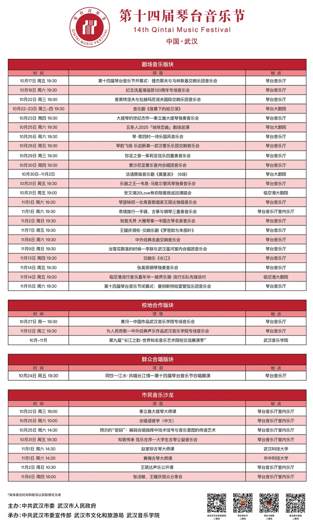琴台音乐节的发展离不开传承,更离不开创新,本届音乐节也创新引入了校地合作新版块。与武汉音乐学院深度合作,“长江之韵·世界知名音乐艺术院校交流展演季”将作为音乐节重点项目,同步开展主题音乐会、大师公开课、学术讲座和工作坊等32项活动。